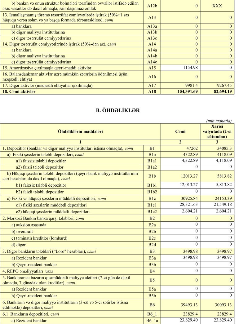 Ötən ilin sonu ilə müqayisədə Bankın kredit portfeli 54,7 milyon manatdan 65,8 milyon manata, depozit portfeli isə 37,9 milyon manatdan 47,3 milyon manata qalxıb.