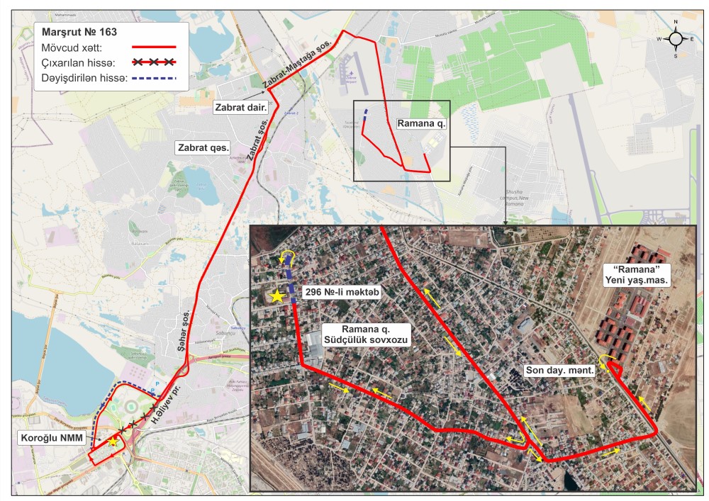 Vətəndaşlara keyfiyyətli, rahat və təhlükəsiz sərnişindaşıma xidmətlərinin göstərilməsi, bu sahədə qanunvericiliyin tələblərinin qorunması məqsədi 163 nömrəli müntəzəm marşrut xətti üzrə sərnişindaşımaları “BakuBus” MMC-yə həvalə edilib. 16.03.2023-cü il tarixindən bu xətt üzrə daşımalar "BakuBus" MMC istismarında olan ortatutumlu avtobuslarla həyata keçiriləcək. Mövcud dəyişiklik Yeni Ramana yaşayış sahəsi, o cümlədən bu ərazidə şəhid ailələri və müharibə əlillərinin məskunlaşdığı yaşayış kompleksi sakinlərinin ictimai nəqliyyata əlçatanlığının daha da yaxşılaşmasına imkan verəcək.