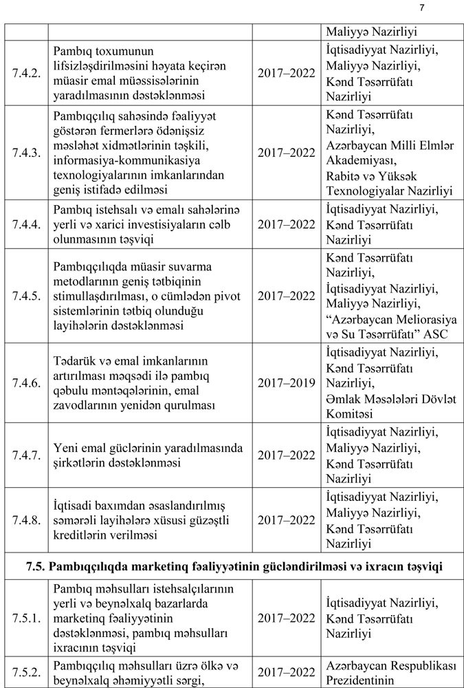 3.2.2. pambıqçılıq sahəsində fəaliyyəti tənzimləyən normativ hüquqi bazanın təkmilləşdirilməsi;