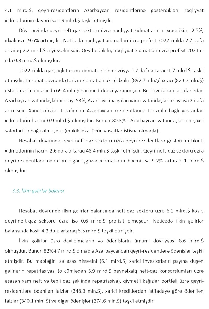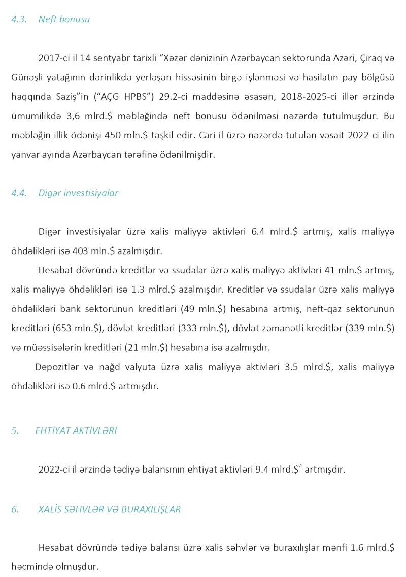 Marja.az xəbər verir ki, bu, Azərbaycan Mərkəzi Bankının 2022-ci il üzrə Tədiyyə Balansı hesabatında bildirilir.
