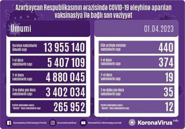 Azərbaycanda son sutkada koronavirus (COVID-19) əleyhinə 440 vaksin vurulub.