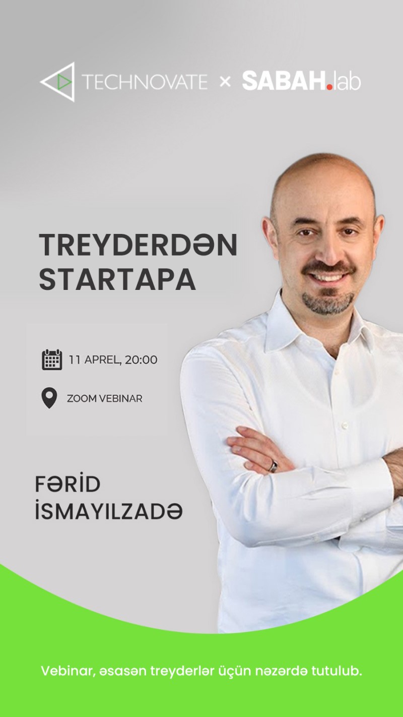 “Technovate - Sabah Angel Club” startap yatırımı mövzusunda olan vebinarında kapital qoyuluşunun fərqli istiqamətlərin, trendlər, yatırım strategiyaları və yeni üfüqlər haqqında bəhs edəcək.