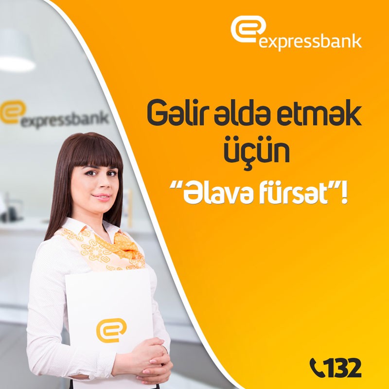 Expressbank-la gəlirlərindən də gəlir qazanmaq istəyən müştərilər bu barədə daha ətraflı məlumat üçün 132 Məlumat Mərkəzinə zəng edə, www.expressbank.az saytına və ya Bankın rəsmi facebook səhifəsinə www.facebook.com/Expressbank daxil ola bilərlər.