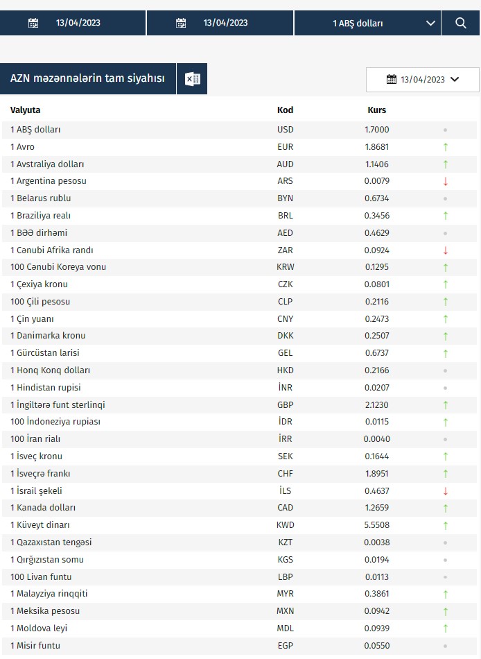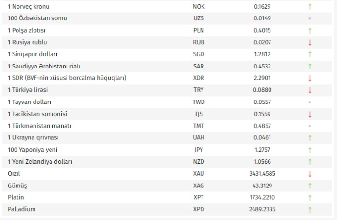 Dolların bazar ertəsi üçün rəsmi məzənnəsi müəyyən olunub
