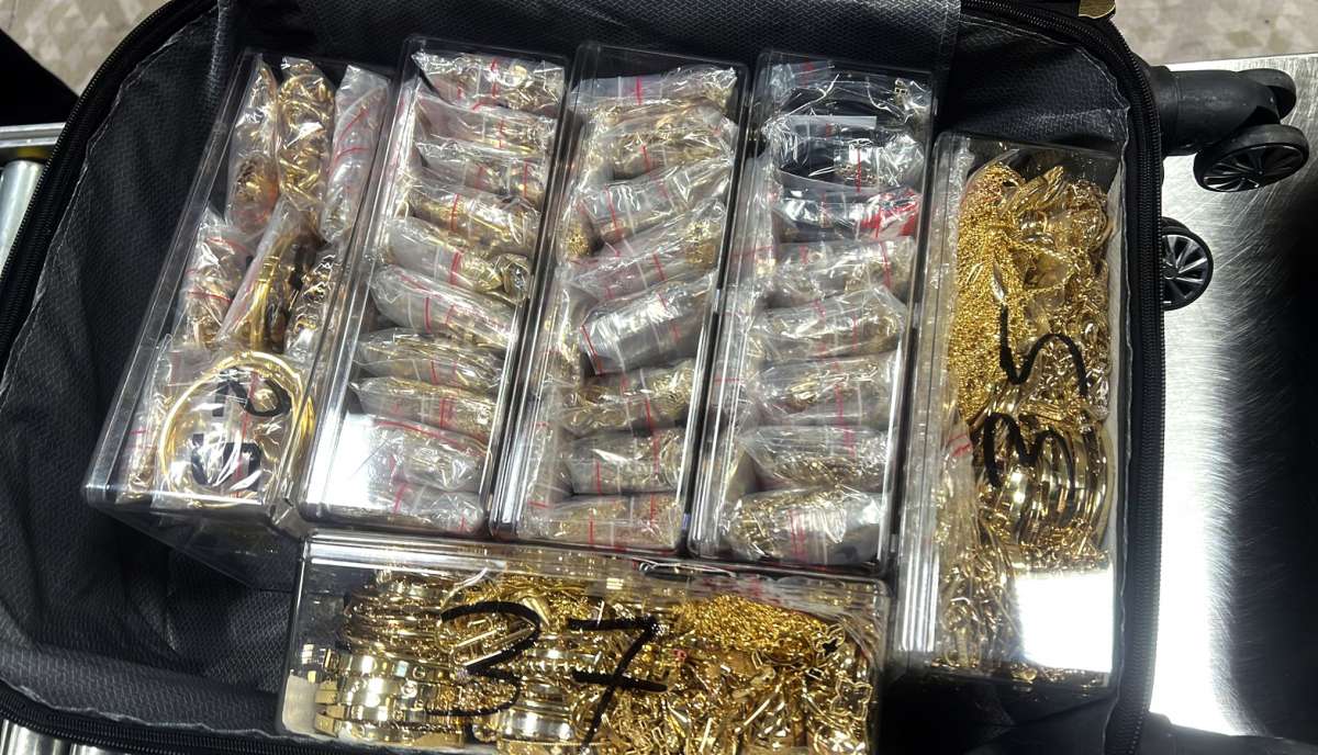 Baxış zamanı əl yüklərindən 6 qutuda qablaşdırılmış, ümumilikdə təqribi çəkisi 17 kq təşkil edən qızıl-zinət əşyaları aşkar edilib.