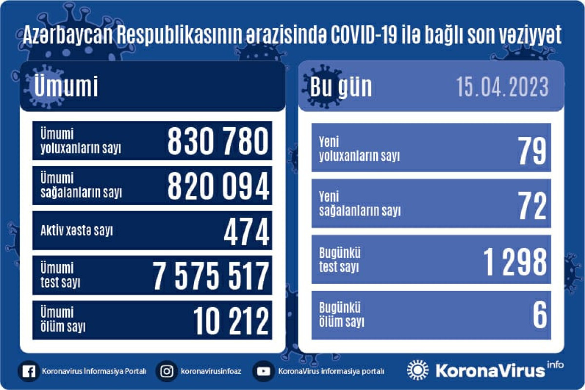Azərbaycanda koronavirus (COVID-19) infeksiyasına 79 yeni yoluxma faktı qeydə alınıb, 72 nəfər müalicə olunaraq sağalıb.