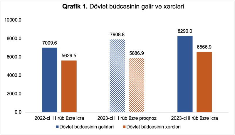 2023-ci ilin birinci rübündə dövlət büdcəsinin gəlirləri 8 milyard 290 milyon manat, xərcləri 6 milyard 566,9 milyon manat olmuş, 1 milyard 723,1 milyon manat məbləğində dövlət büdcəsinin artıqlığı (profisit) yaranmışdır ki, bu da 2022-ci ilin müvafiq dövrü ilə müqayisədə 343 milyon manat və ya 24,9 faiz çoxdur.