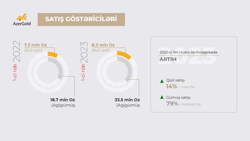 Şirkətdən Marja-ya daxil olmuş məlumata görə, sözügedən dövr ərzində beynəlxalq və yerli bazarlarda 8.3 min unsiya qızıl, 33.5 min unsiya gümüşün satışını həyata keçirən Səhmdar Cəmiyyət satış əməliyyatları nəticəsində, ümumilikdə 27.9 milyon manat vəsait əldə edib. Bu, 2022-ci ilin eyni dövrü ilə müqayisədə qızıl satışı həcmində 14%, gümüş satışı həcmində 79%, satış gəlirlərində isə 13.9% artım deməkdir.