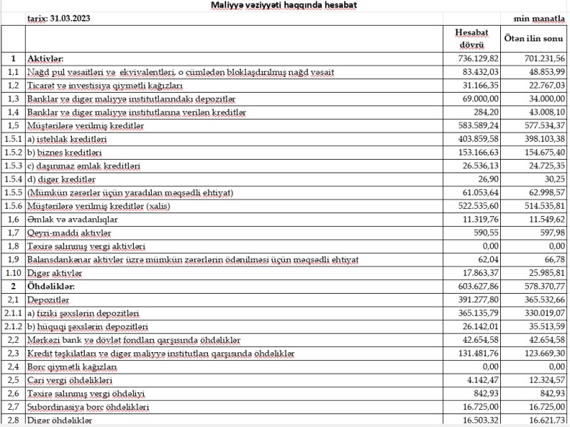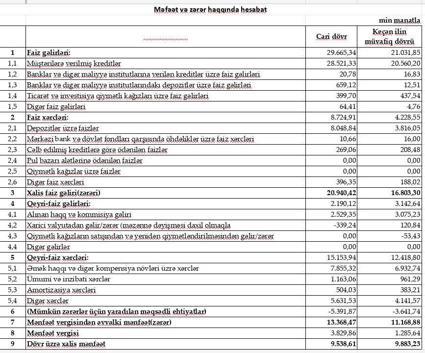 Bu bank daha da böyüyüb, ilk rübü 10 milyon manata yaxın xalis mənfəət ilə bağlayıb