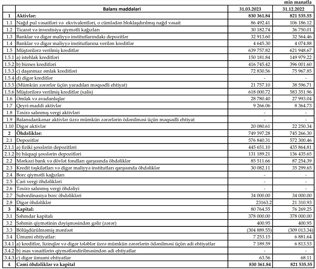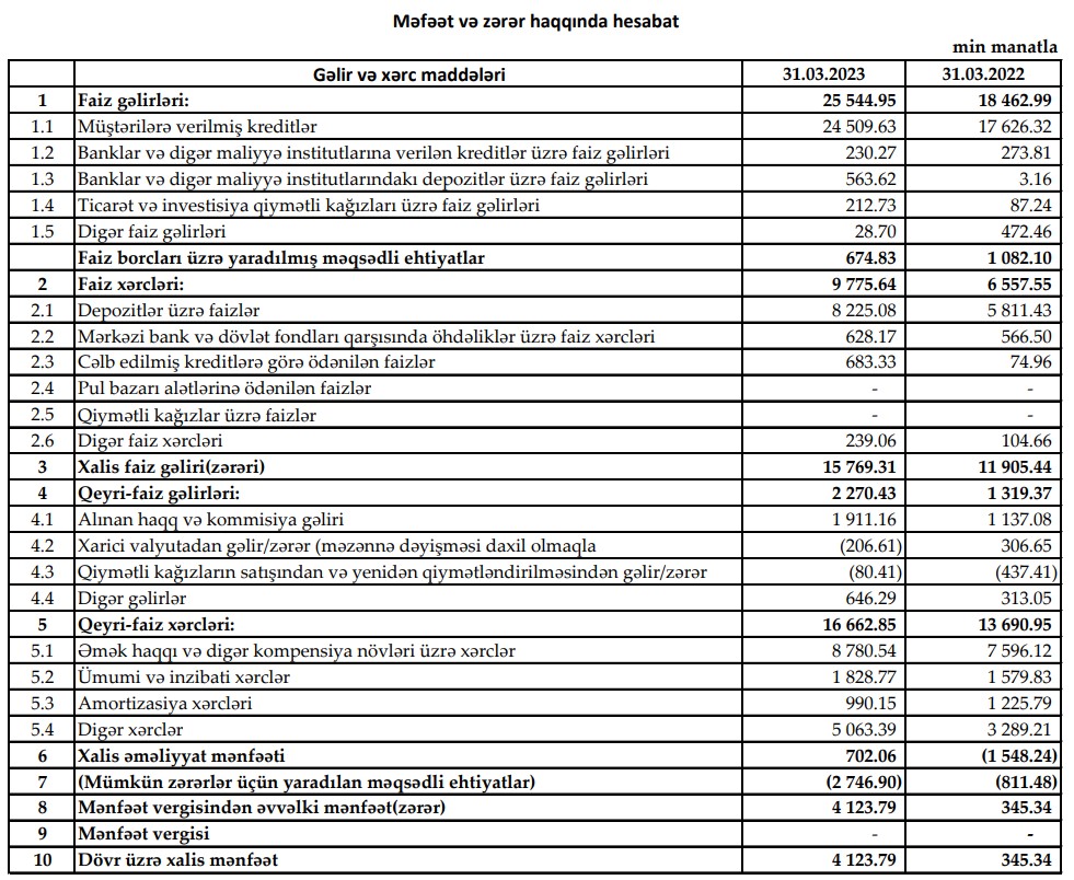 Həmçinin, ilk rübdə mümkün zərərlər üçün yaradılan məqsədli ehtiyatlardan azad olmuş 2 milyon 747 min manat mənfəətə əlavə edilib və "Yelo Bank"ın mənfəəti 4 milyon 124 min manata yüksəlib. 2022-ci ilin ilk rübündə məqsədli ehtiyatlardan azad olmuş 811 min manatın hesabına əməliyyat zərəri bağlanmış və Bankın 345 min manat mənfəəti yaranmışdı.