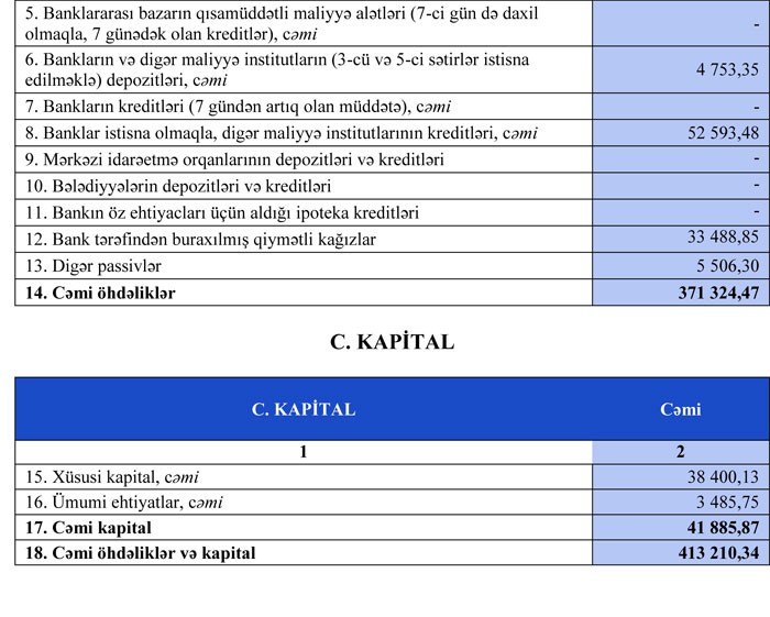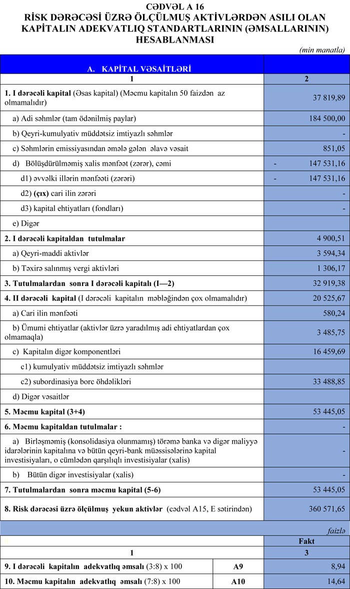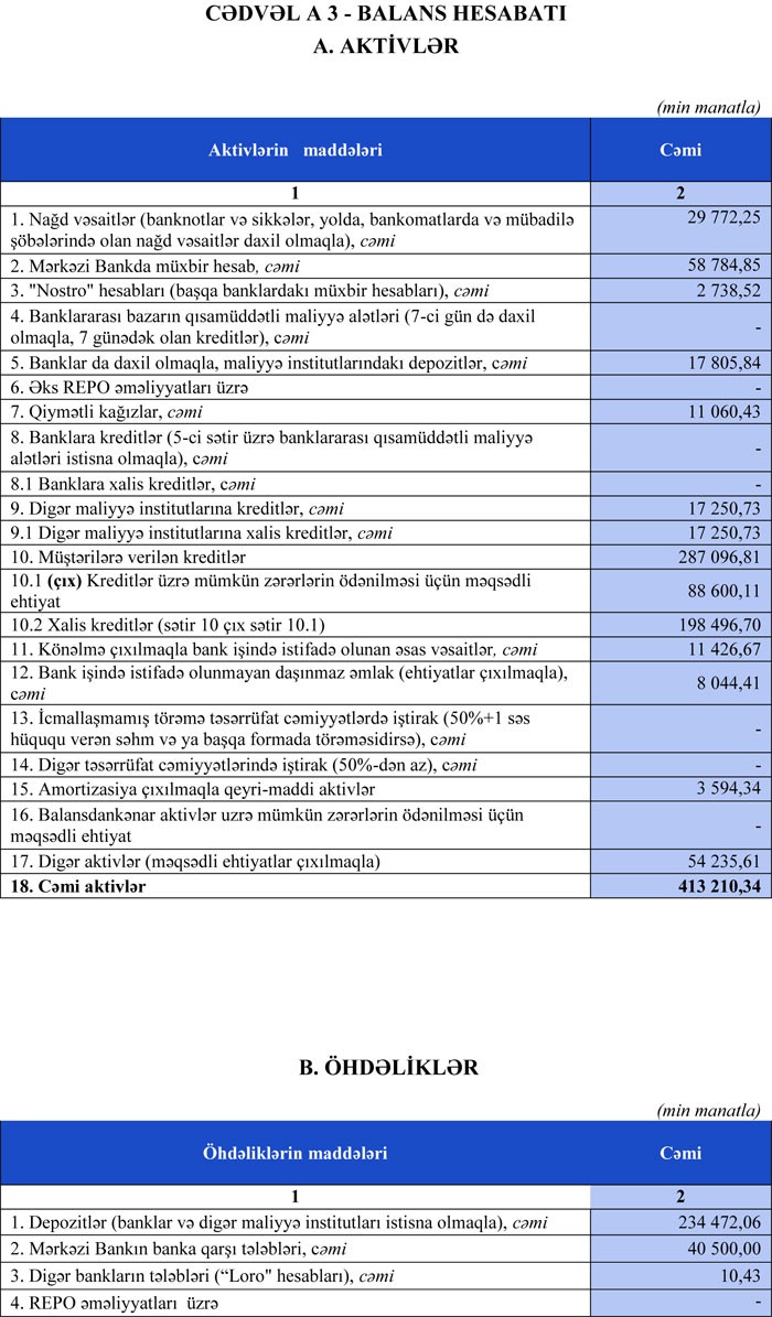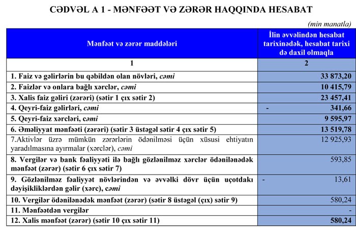 Bank 13 milyon 519 min manat əməliyyat mənfəətinin 12 milyon 925,93 min manatını aktivlər üzrə mümkün zərərlərin ödənilməsi üçün xüsusi ehtiyatın yaradılmasına ayırıb.