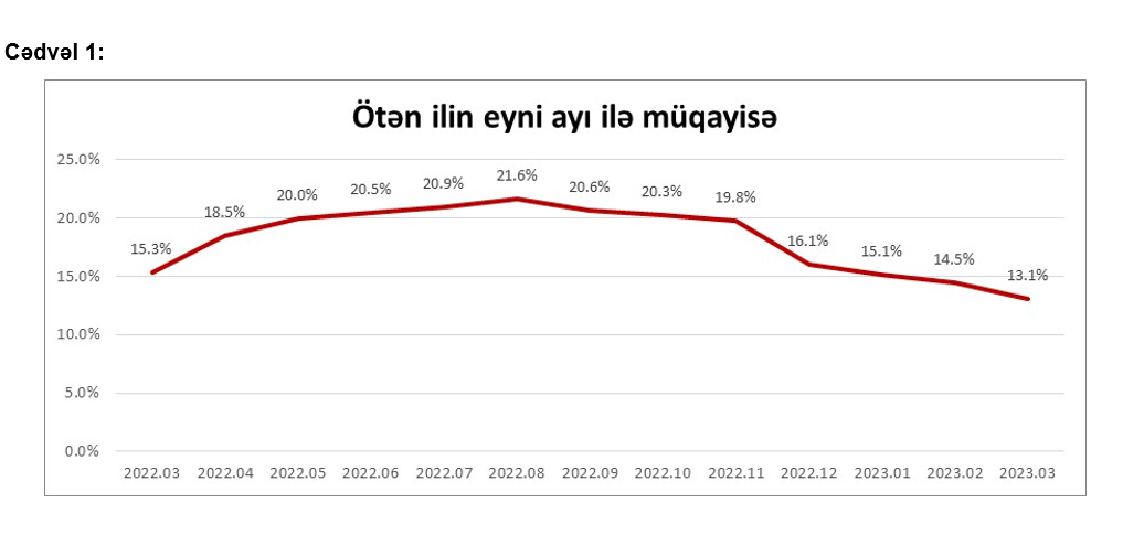 Belə ki, tez köhnələn qida məhsullarının qiymətində keçən ilin aprel ayına nisbətən 16.2% artım, quru, dondurulmuş qida məhsullarının, şirniyyat və spirtsiz içkilərin qiymətində 12.5% artım, spirtli içkilər və tütün məmulatlarının qiymətində 6.5%, gigiyena və təmizlik vasitələrinin qiymətində isə 18.9% artım izlənilib.