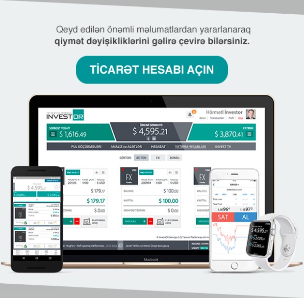 Risk bildirişi:Yuxarıda göstərilən məlumatlar tamamilə tövsiyə xarakterlidir. Bu fəaliyyət üzrə həyata keçirilən əməliyyatlar yüksək risk qrupuna daxildir və “InvestAZ İnvestisiya Şirkəti” QSC yuxarıda göstərilən məlumatlar əsas götürülməklə, həyata keçirilən investisiya əməliyyatları üzrə heç bir öhdəlik daşımır.