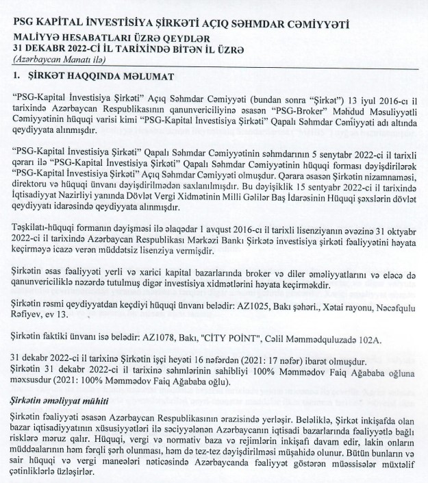 "PSG-Kapital İnvestisiya Şirkəti" QSC səhmlərinin 100%-i Faiq Ağababa oğlu Məmmədova məxsusdur.