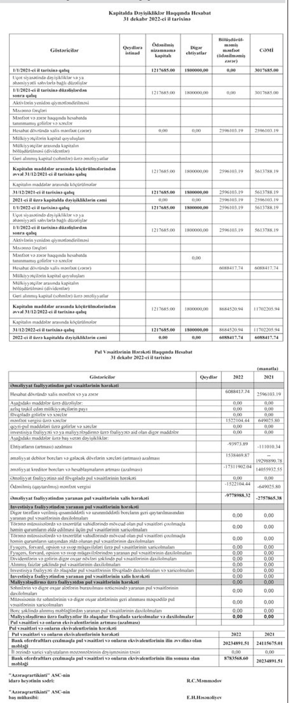 "Azəraqrartikinti" şirkətinin gəlirləri və xalis mənfəəti kəskin artıb