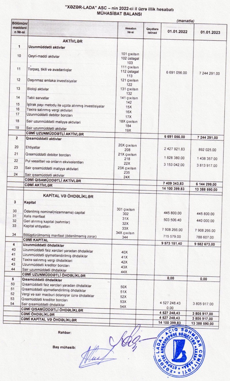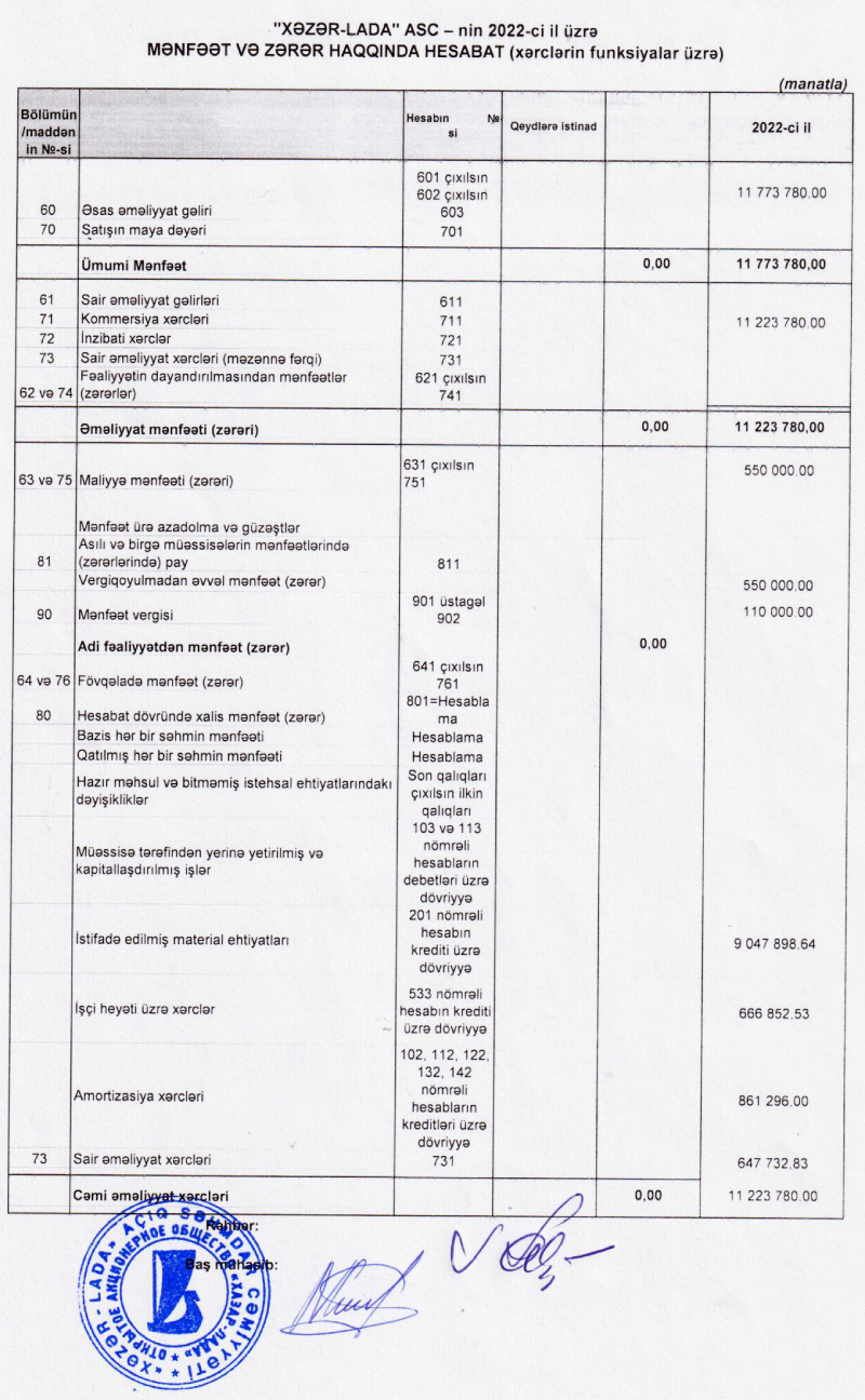 Marja.az xəbər verir ki, "Xəzər Lada" ASC-nin cəmi əməliyyat gəlirləri 2021-ci ildə 27 milyon 946 min manat ikən, 2022-ci ildə 11 milyon 774 min manat təşkil edib.(16 milyon 172 min manat və ya 137% azalıb). Şirkətin xərcləri isə 2021-ci ildəki 27 milyon 172 min manatdan 11 milyon 223 min manata geriləyib.