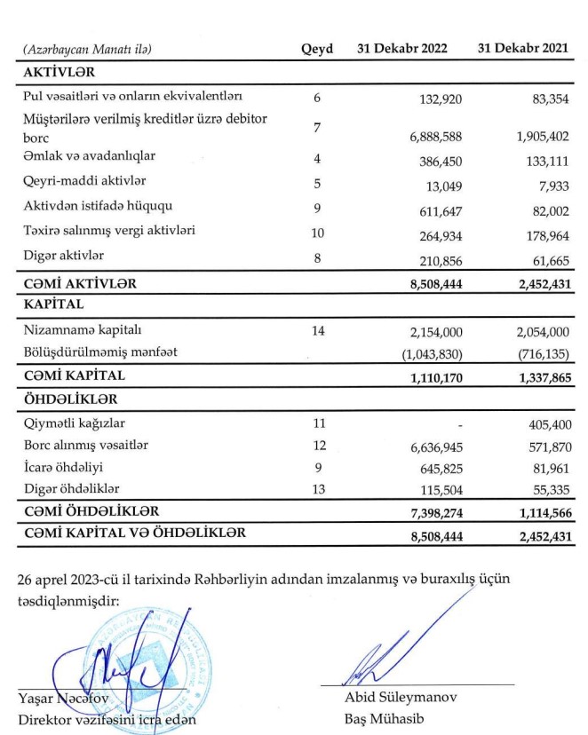 Keçən il "Azərbaycan Mikro-Kredit"in kredit portfeli (müştərilərə verilmiş kreditlər) 3,6 dəfə artaraq 6 milyon 888 min manata çatıb. Təşkilatın cəmi aktivlər isə 3,5 dəfə artaraq 8 milyon 508 min manata yüksəlib.