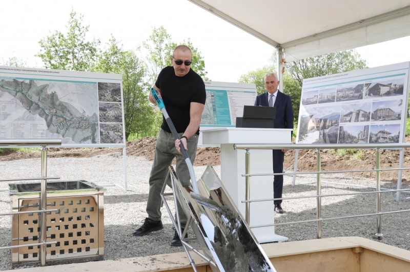 Əliyev Laçına səfər edib, qəsəbə və kəndin təməli qoyulub