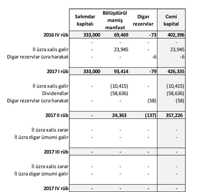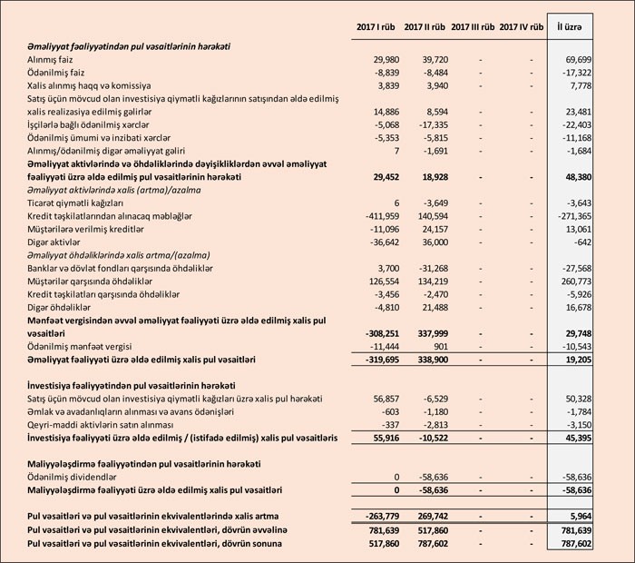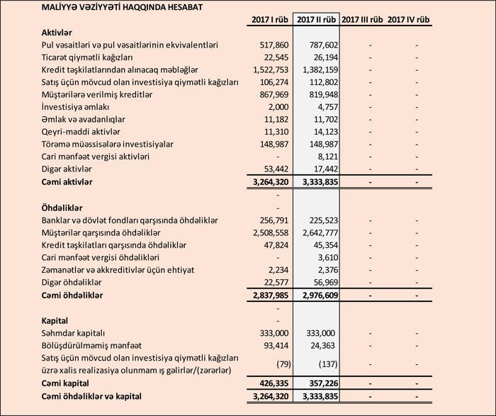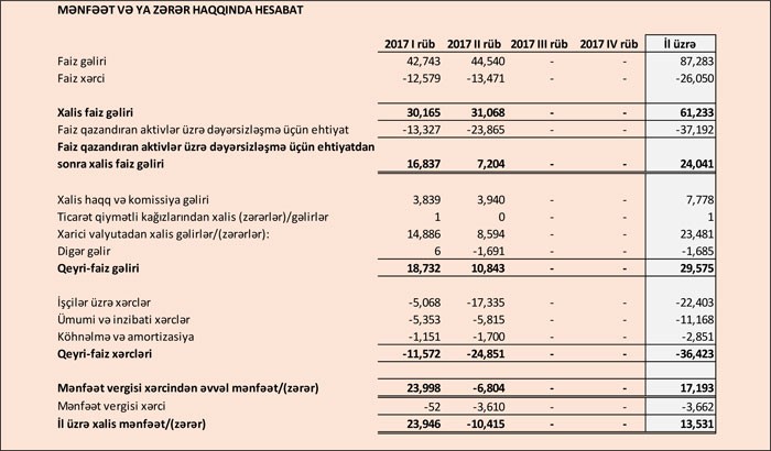 Bankın kredit portfeli cari ilin birinci rübünün sonundakı 867 milyon 969 min manatdan 819 milyon 948 min manata düşüb, depozit portfeli isə (müştərilər qarşısında öhdəliklər) 2 milyard 509 milyon manatdan 2 milyard 643 milyon manata qalxıb.