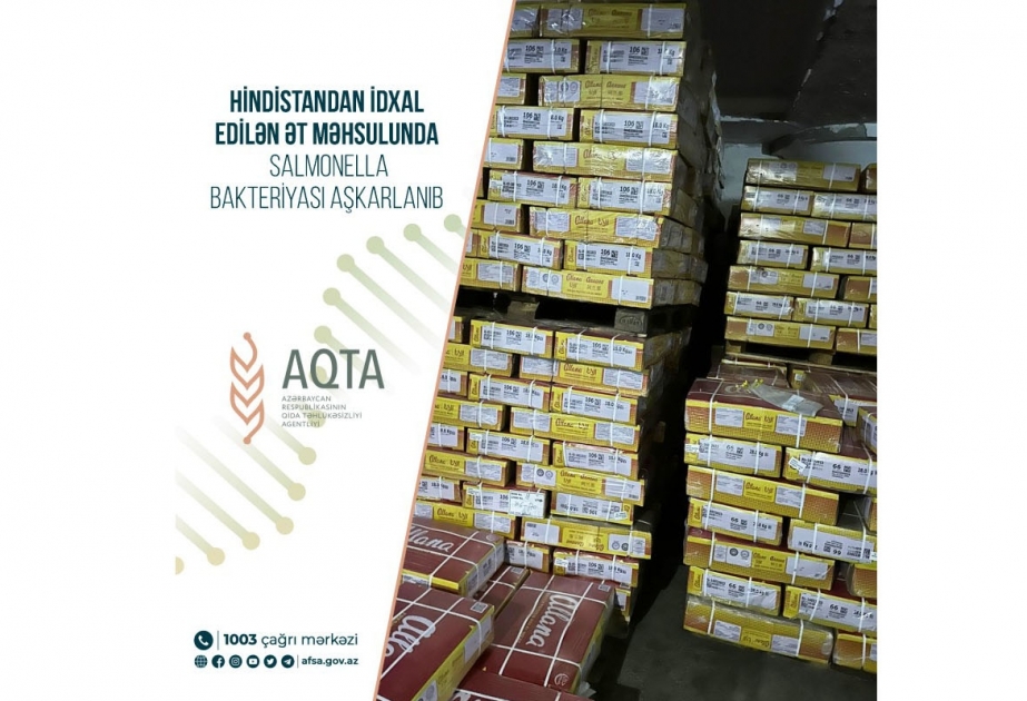Marja AQTA-nın yaydığı məlumata istinadən xəbər verir ki, aparılan sınaq nəticəsinə əsasən, ət məhsulunda salmonella bakteriyası aşkarlanıb və məhsulun qida sahəsində normativ sənədin tələblərinə uyğun olmadığı müəyyən edilib.