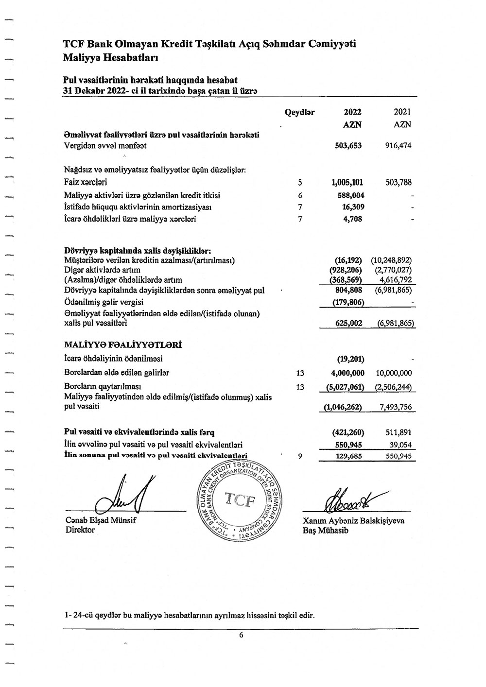 "TCF" BOKT ASC-nin 2022-ci il üzrə maliyyə hesabatları