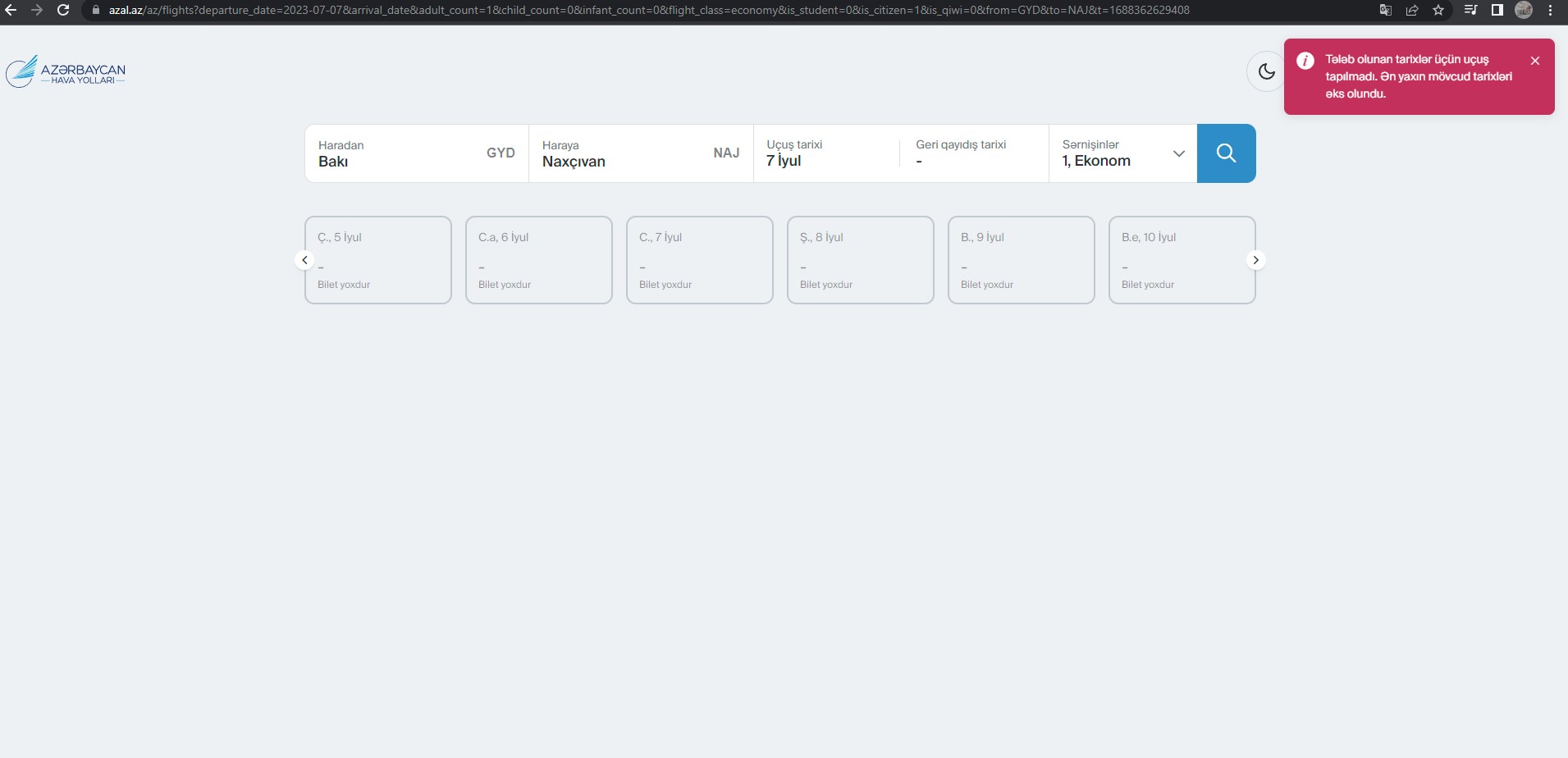 Qeyd edək ki, hazırda AZAL-ın rəsmi saytından Naxçıvana bilet almaq mümkün deyil. İstənilən tarixi seçdikdə "Tələb olunan tarixlər üçün uçuş tapılmadı. Ən yaxın mövcud tarixləri əks olundu" məlumatı çıxır.
