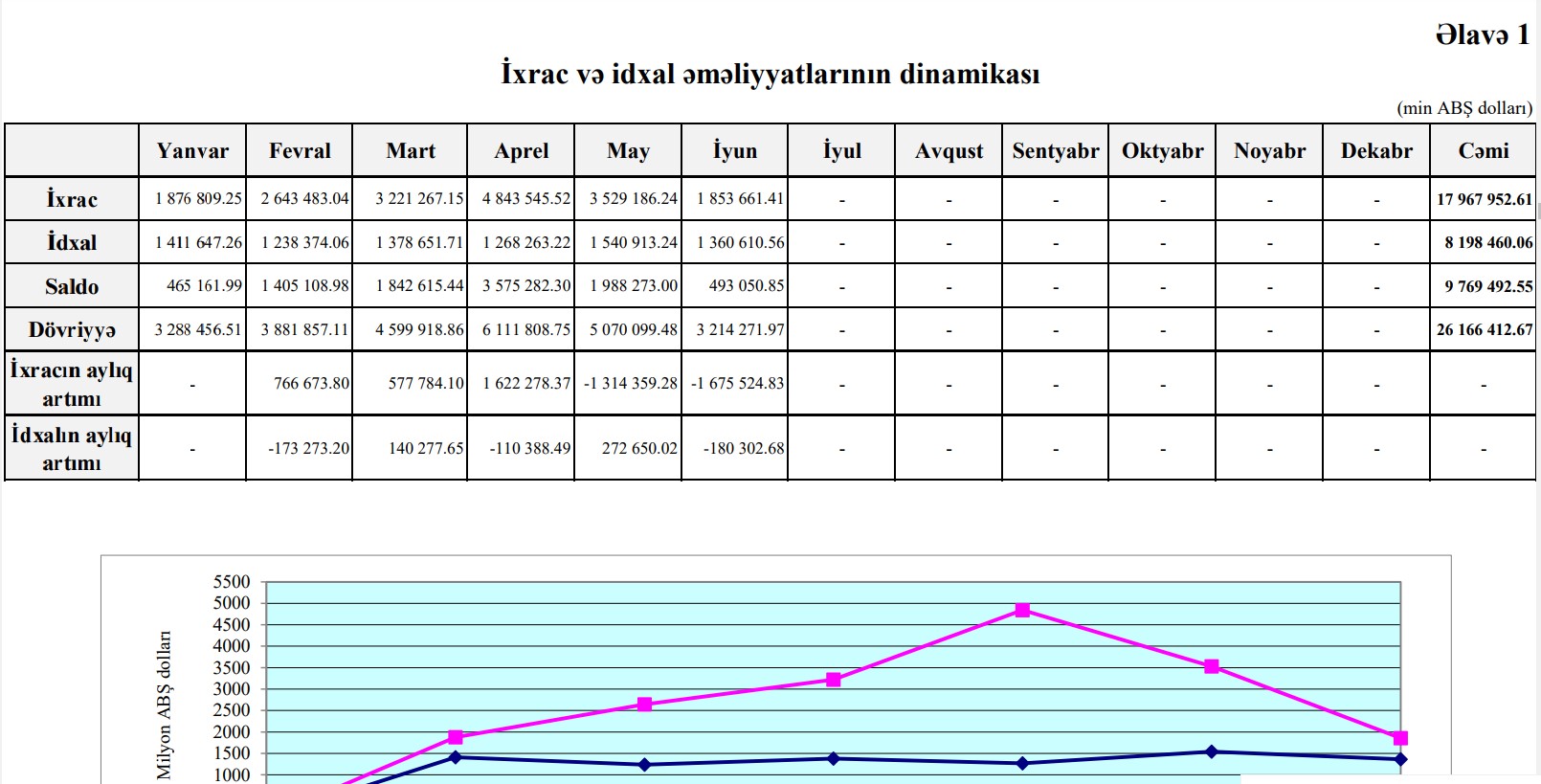 2023-cü ilin May ayı ilə müqayisədə İyun ayında Azərbaycanın idxalı, ixracı və xarici ticarət saldosu azalıb.