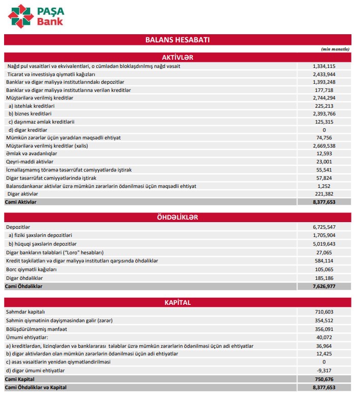 30 İyun 2023-cü il tarixində Azərbaycanın ən böyük korporativ bankı olan "PAŞA Bank"ın kredit portfeli (müştərilərə verilmiş kreditlər) 2 milyard 744 milyon 294 min manat təşkil edib ki, bu da ötən ilin eyini dövrü ilə müqayisədə 233 milyon 540 min manat və ya 9,3% çoxdur.