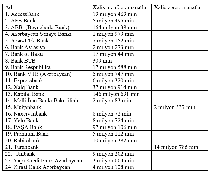 22 bank xalis mənfəət açıqladı - SİYAHI