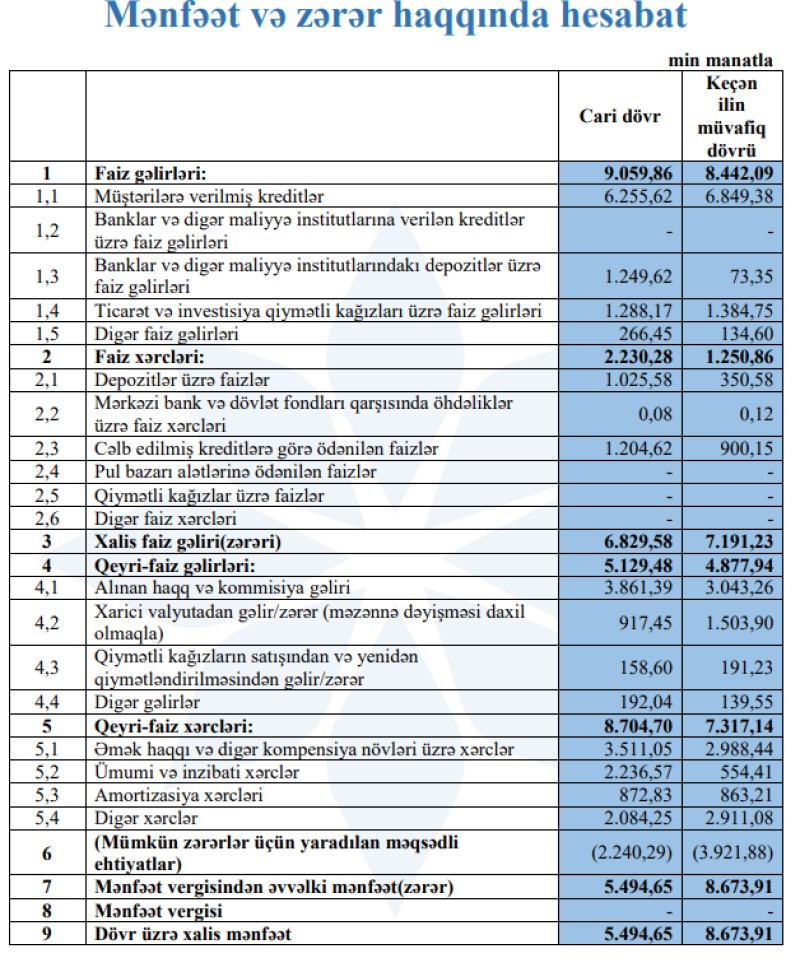 "AFB Bank" son maliyyə vəziyyətini açıqladı