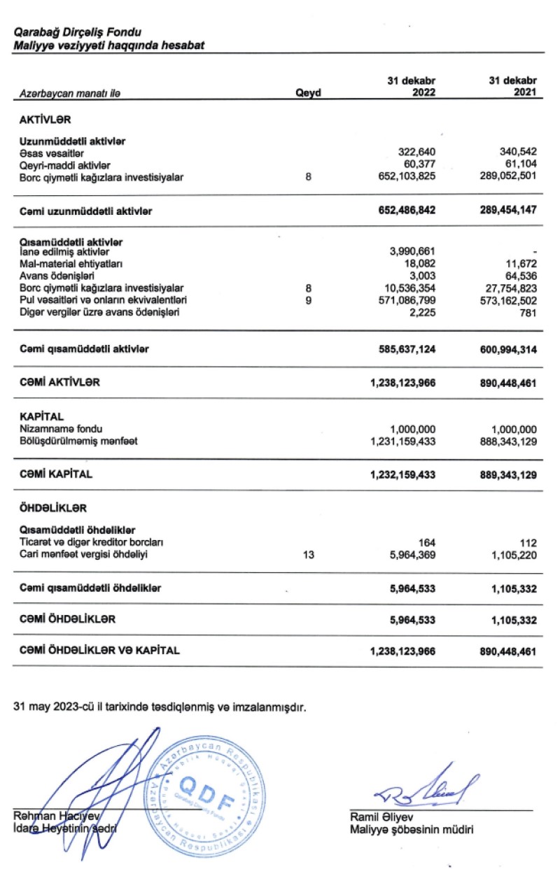 Azərbaycan dilində: https://qdf.gov.az/media/files/article/255/MHBS-uygun-Maliyye-Hesabatlari-ve-Musteqil-Auditorun-Hesabati-2022.pdf
