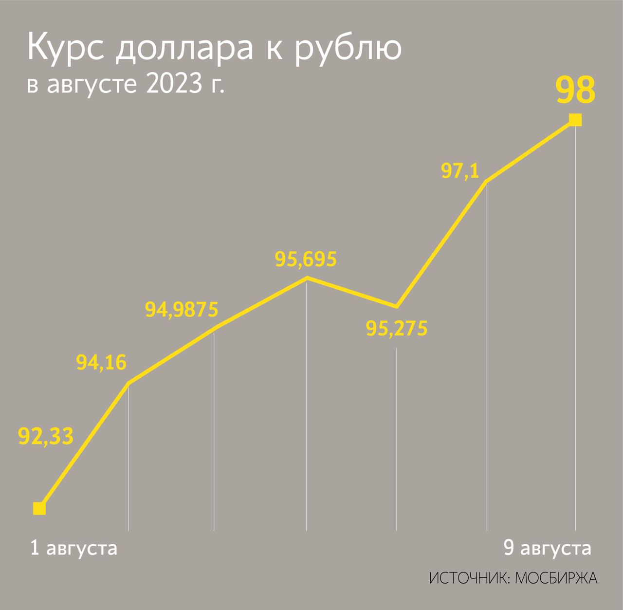 Avqustun 1-də dollar 92,33 rubl səviyyəsində ticarət olunurdu. Ötən 8 gün ərzində ABŞ valyutası 5,78% bahalaşıb.
