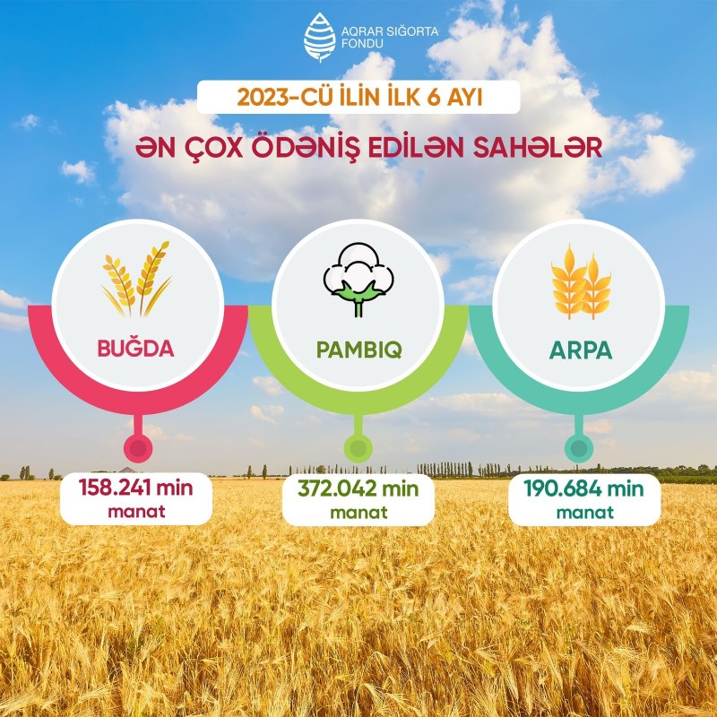 Bitkiçilik üzrə ən çox sığorta ödənişləri pambıqçılıq sahəsi üzrə olub. Bu sahə üzrə 100 fermer və təsərrüfata 372 042 manat ödəniş edilib. Arpa əkinləri üzrə 85 fermerə 190 684 manat, buğda sahəsi üzrə isə 35 fermerə 158 241 manat ödəniş həyata keçirilib.