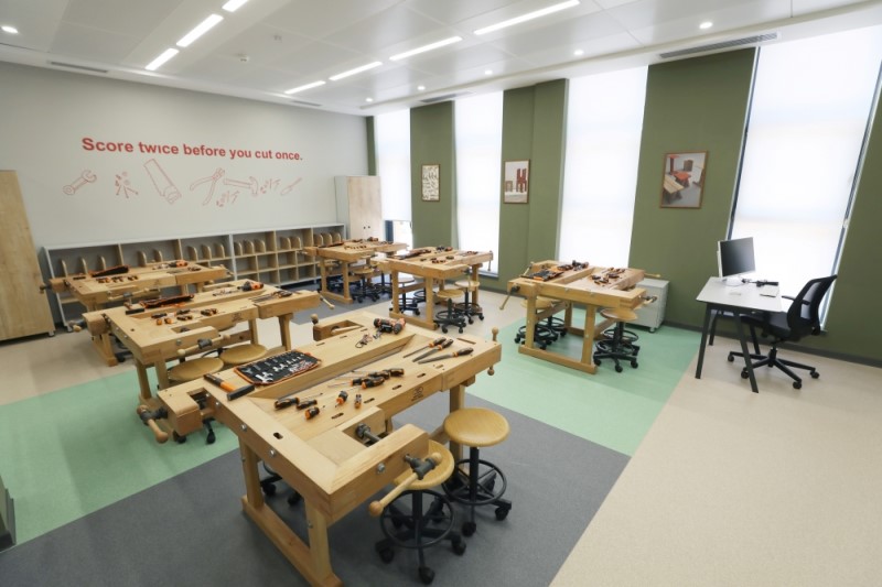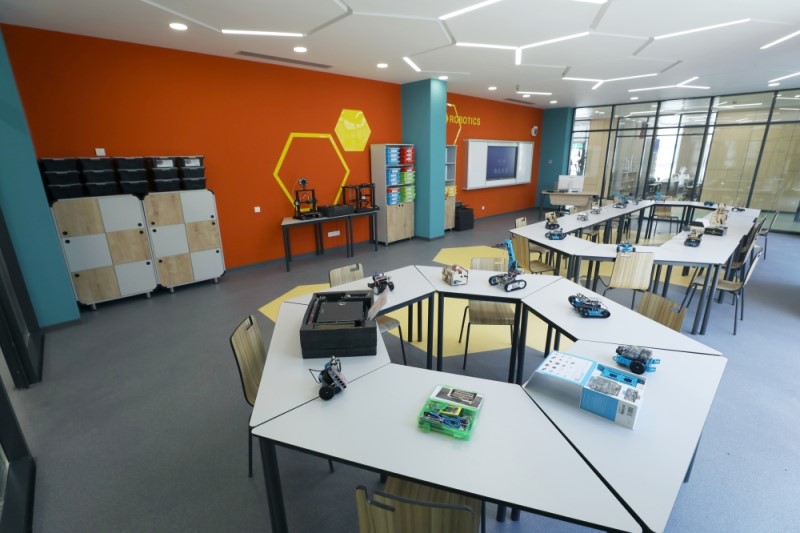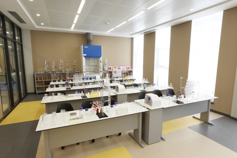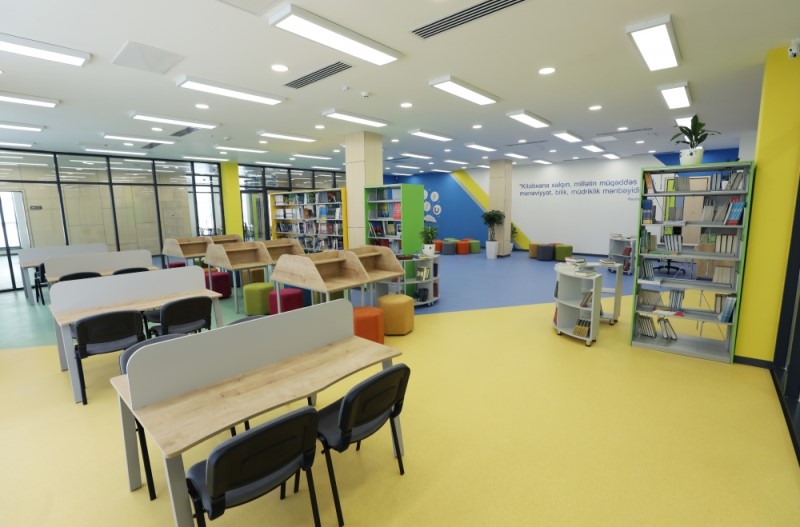 Daha sonra dövlət başçılarına və xanımlarına məktəbdə yaradılan şərait barədə məlumat verilib.