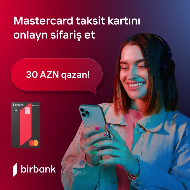 2 oktyabr tarixinədək Birbank Cashback taksit kartını onlayn əldə edən müştərilər kartın rəsmiləşdiyi gündən etibarən ilk 30 gün ərzində birdəfəlik 200 AZN və üzəri nağdsız alış-veriş etdikdə 30 AZN bonus qazanacaqlar.