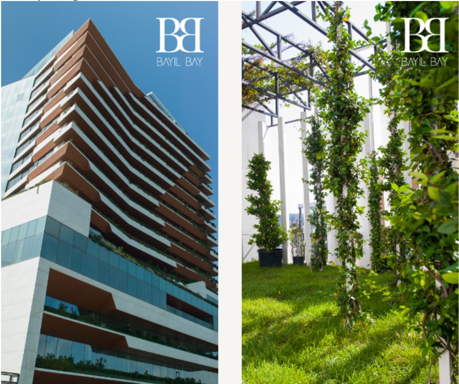 Hər bir terrasda xüsusi texnologiyalardan istifadə edilməklə bitkilər əkilib, bu da binanı təmiz hava ilə təmin edir və sağlam mikroiqlim yaradır. Bununla da “Bayıl Bay” sözün əsl mənasında yaşıllıqlara qərq olub.