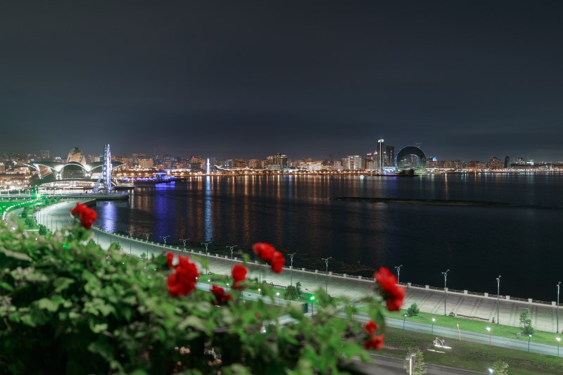 Terrasa çıxan kimi möhtəşəm panorama gözlərimizin önündə peyda olur - dəbdəbəli bulvar və ucsuz-bucaqsız sulara malik əzəmətli Xəzər dənizi. Dənizi seyr edərkən yüngül mehdən həzz alırsınız. Bu da kurort tətili hissini yaradır.