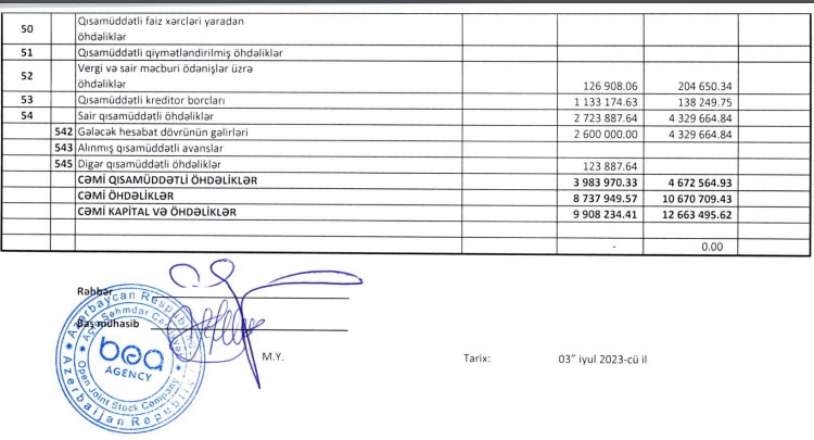 30 İyun 2023-cü il tarixində "BOA Agency" ASC 12 milyon 663 min manat təşkil edib.