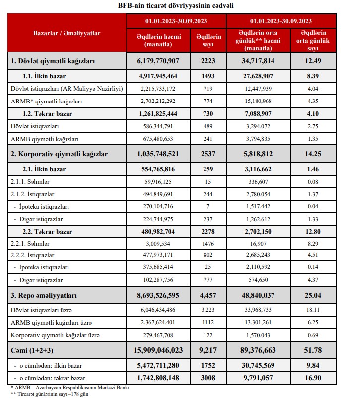 2023-cü ilin 9 ayı ərzində Maliyyə Nazirliyi dövlət istiqrazlarının yerləşdirilməsi yolu ilə 2 milyard 215 milyon 733 min manat cəlb edib.