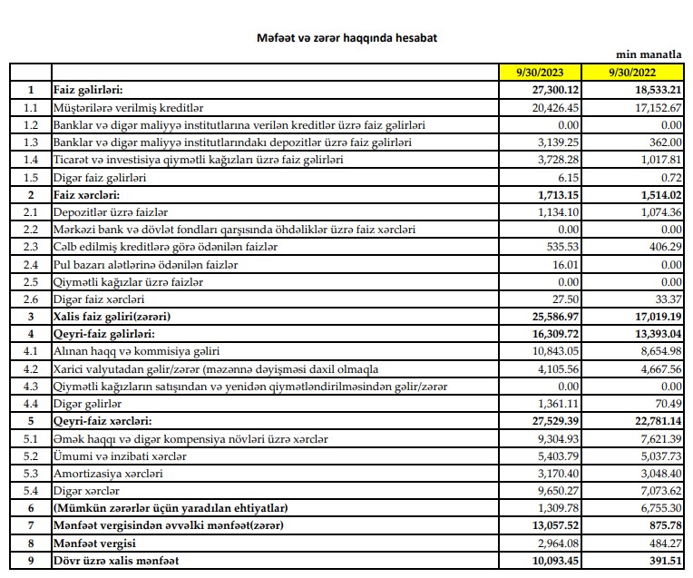 Bankın yaydığı press-relizdə bildirilir ki, ötən ilin uyğun dövrü ilə müqayisədə bankın xalis mənfəəti kəskin artaraq 10 milyon manat təşkil edib.