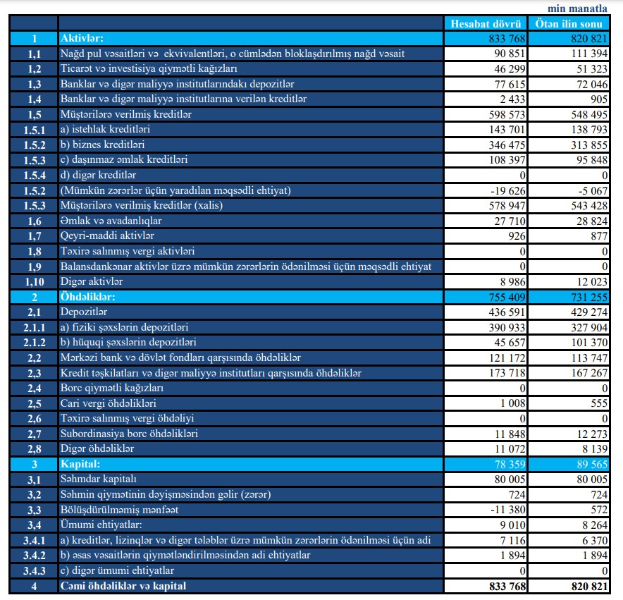 Marja.az xəbər verir ki, o cümlədən, bankın istehlak kreditləri portfeli 4 milyon 908 min manat aratraq 143 milyon 701 min manata, biznes kreditləri portfeli 32 milyon 620 min manat artaraq 346 milyon 475 min manata, ipoteka kreditləri portfeli isə 12 milyon 549 min manat artaraq 108 milyon 397 min manata çatıb.