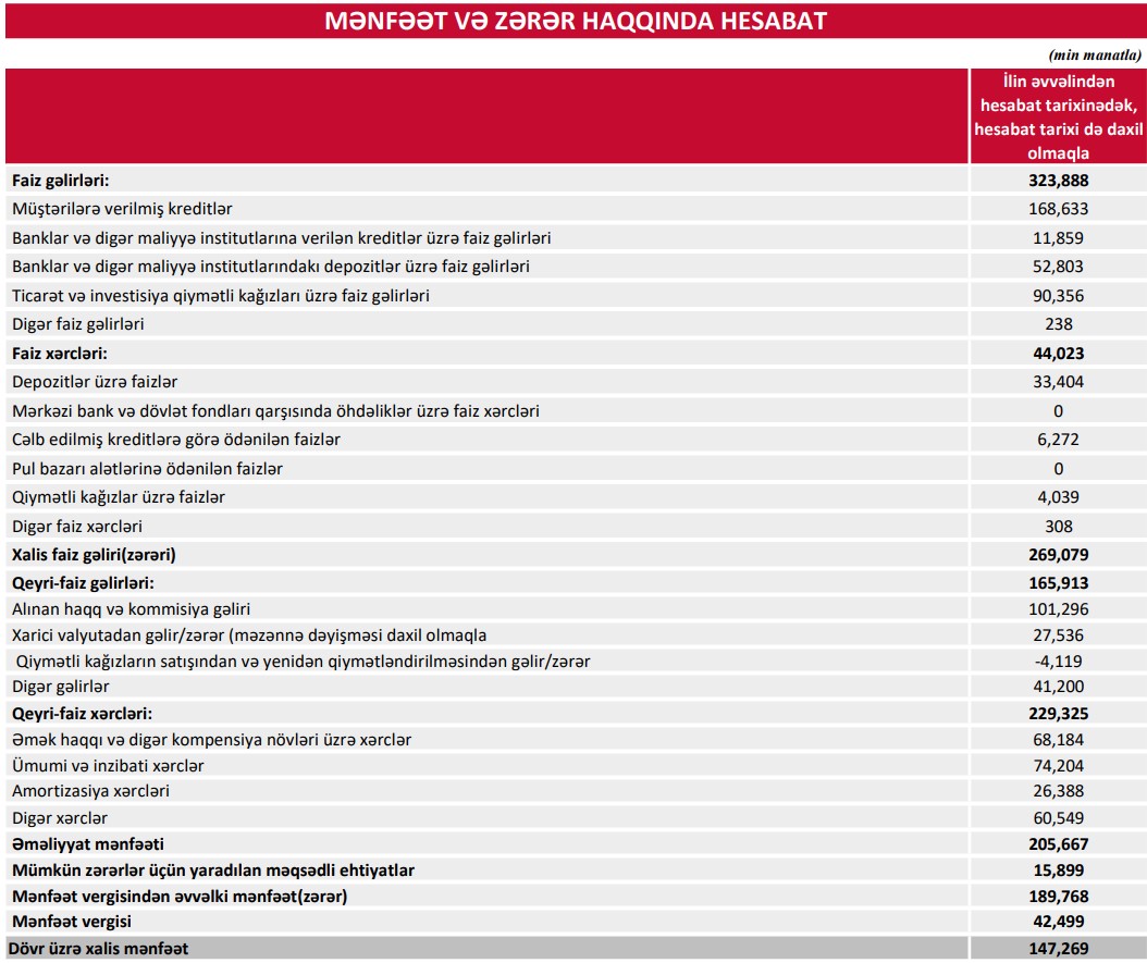 Bank 147 milyon manatdan çox xalis mənfəət əldə edib