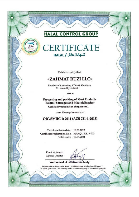 Kolbasa istehsal edən Azərbaycan şirkəti beynəlxalq Halallıq Sertifikatı ilə təltif edildi