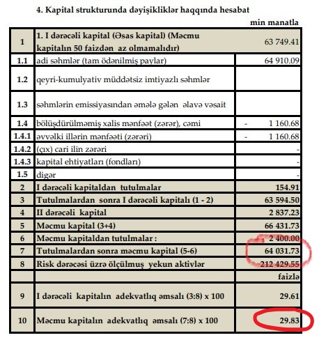 Eyni zamanda "Muğanbank"maliyyə hesabatında məcmu kapitalının adekvatlıq əmsalının 21,81% təşkil etdiyini qeyd etmişdi ki, bu da minimal norma olan 10%-dən 2 dəfə yüksəkdir.