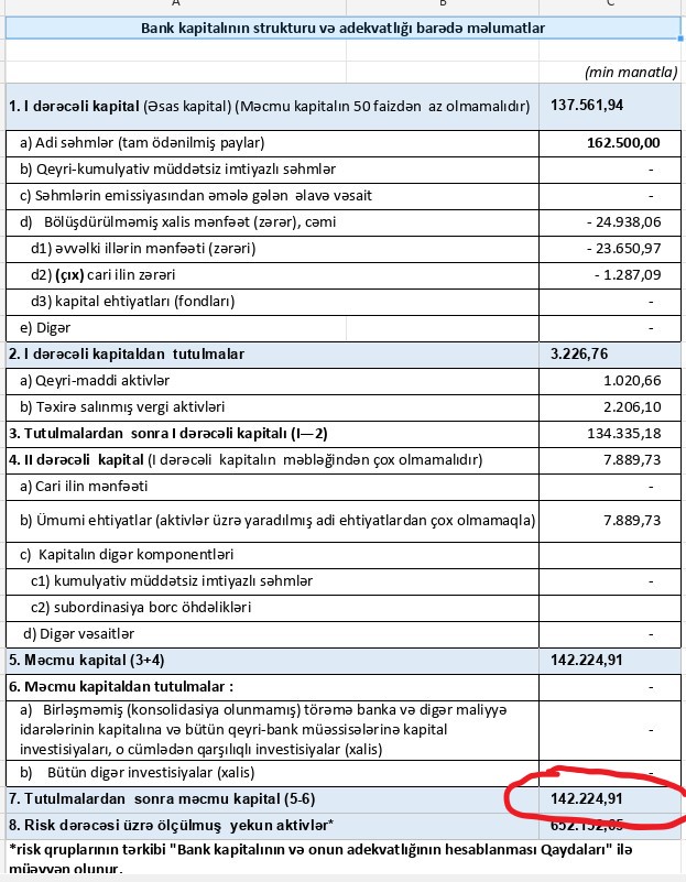 Mərkəzi Bank 6 may 2023-cü il tarixli Qərarı ilə "Günay Bank"ın lisenziyasını ləğv edərkən, bu bankın da məcmu kapitalının miqdarının banklar üçün müəyyən edilmiş minimum miqdardan aşağı olduğunu, məcmu kapitalının adekvatlıq əmsalının 3 faizdən az olduğunu bildirmişdi. Halbuki, həmin dövr üzrə "Günay Bank" maliyyə hesabatlarında məcmu kapitalının 64 milyon 32 min manat olduğunu göstərmişdi. Bu məbləğ də, minimal tələb olan 50 milyon manatdan çox idi. Həmçinin "Günay Bank" məcmu kapitalının adekvatlıq əmsalının 29,83% təşkil etdiyini bəyan etmişdi.