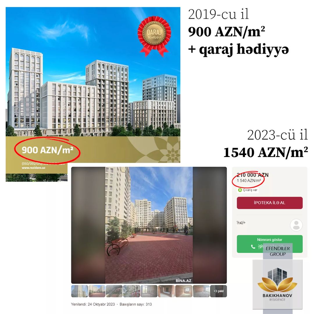 Sabunçu rayonunda, xüsusilə də Bakıxanov qəsəbəsində yaşayış binalarının tikintisini həyata keçirən "Efendiler Group" şirkəti (Bakıxanov Rezidens) inşa etdiyi mənzillərin son 4 ildə 70 faizdən çox bahalaşdığını açıqlayıb.