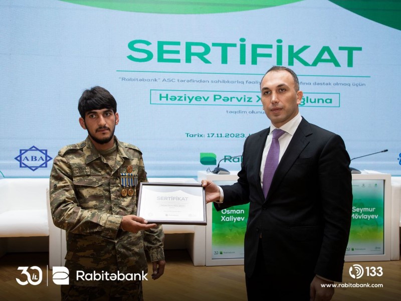 Qeyd edək ki, tədbirdə dövlət fondları vasitəsilə 3 sahibkara - Güliyev Şəmsəddin, Fətəliyev Səlahəddin, Kərimov Kamilə verilən kreditlərin imzalanma mərasimi də baş tutub. Bundan başqa, özünüməşğulluq proqramı çərçivəsində Rabitəbank 1 şəhid ailəsi - şəhid Dünyamaliyev İslamın anası Dünyamalıyeva Gülşən və 4 qazi - Şirəliyev Vüsal, Həziyev Pərviz, Ağasıyev Ağagül və Adgözəlov Sahil ilə müqavilə bağlayıb və bizneslərini qurmaları üçün onlara lazımi avadanlıqları təqdim edib.