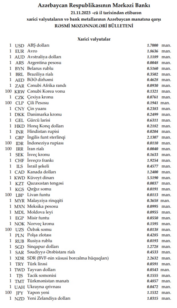 Rəsmi məzənnələr açıqlandı