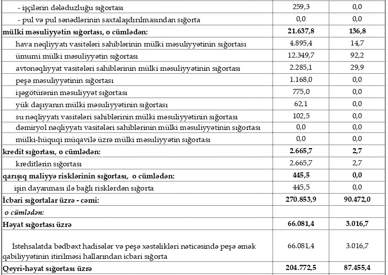 Sığorta şirkətləri - haqlar və ödənişlər - SİYAHI