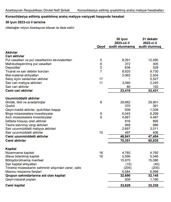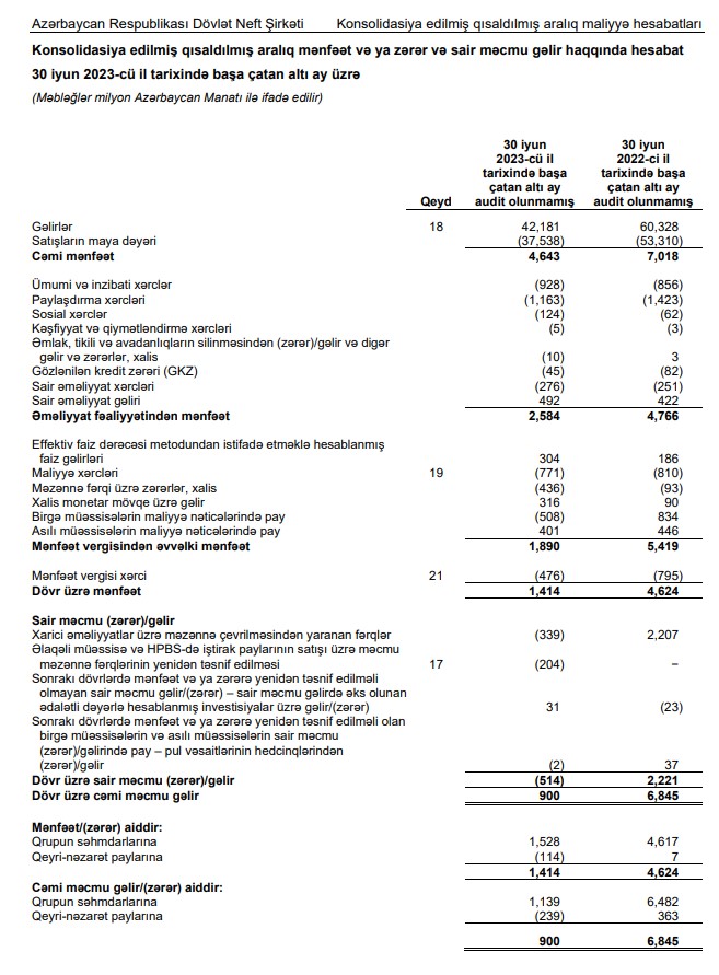 Qeyd edək ki, SOCAR 30 iyun 2023-cü il tarixində başa çatan altı ay üzrə Konsolidasiya edilmiş hesabatlarını dərc edib.